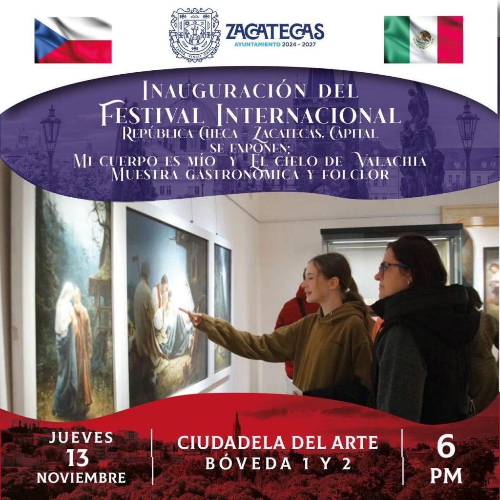 La ciudad de Zacatecas Capital abrirá sus puertas al mundo este jueves 13 y viernes 14 de noviembre con la celebración del Festival Internacional República Checa – Zacatecas, Capital, un evento que reunirá lo mejor del arte, la cultura y la cooperación internacional entre México y la República Checa.