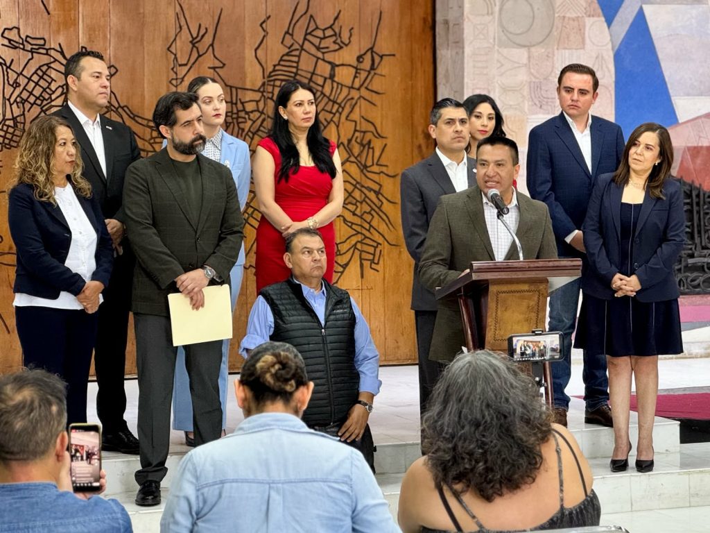 Durante esta conferencia de prensa que se llevó a cabo en el Vestíbulo del Congreso, también estuvieron presentes las y los Diputados de dichas fracciones de la LXV Legislatura del Congreso del Estado.