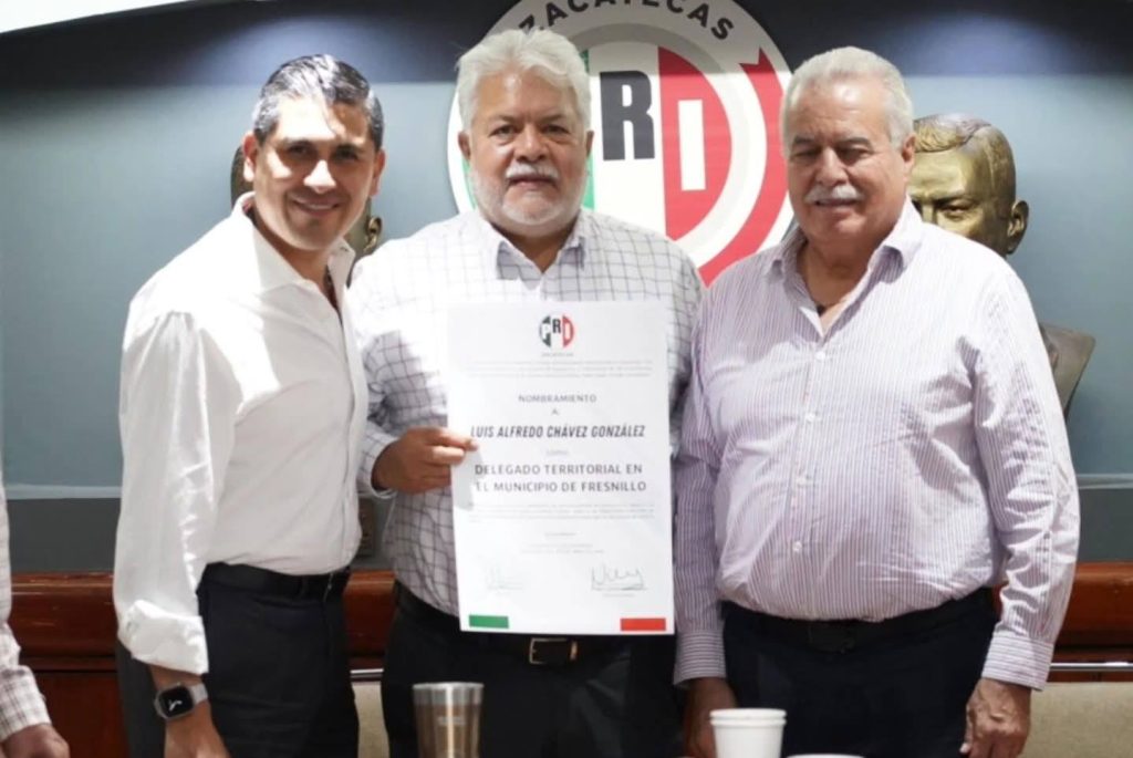 En una reunión de trabajo celebrada ayer en el Salón Presidentes de la sede estatal del PRI, el Presidente Carlos Peña Badillo y el Delegado General del CEN, José Marco Antonio Olvera Acevedo, entregaron nombramientos para ocho Delegados que serán responsables de conducir la renovación de dirigencias municipales en Calera, Fresnillo, Guadalupe, Jerez, Loreto, Pinos, Sombrerete y Zacatecas.
